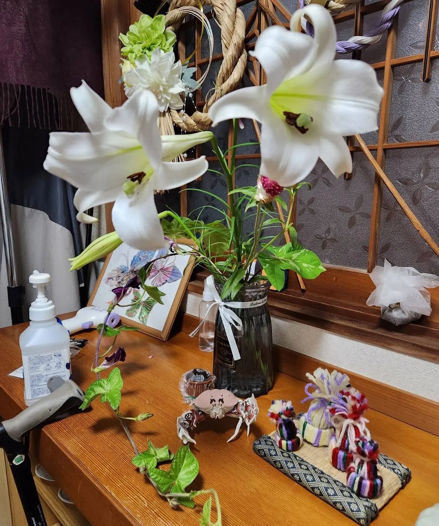 日付が変わってしまいましたが、9月になりました 2025/09/02 日付が変わってしまいましたが、9月になりました まだまだ暑いですが夏バテ解消していきましょう さて、写真は先月ご利用者さんからの差し入れの百合にそれとなく他の花と朝顔もツルと共に入れて見ました 花をいけるというのは難しいものですね💦 竹